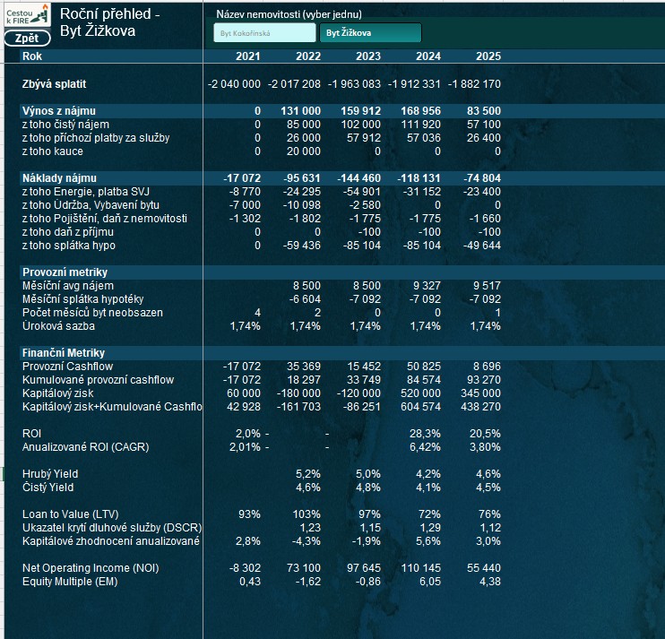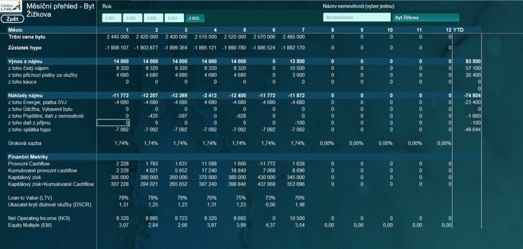 ✔️ Reporty po měsících i letech – jasně vidíte, jak se vyvíjí cashflow i celková hodnota.